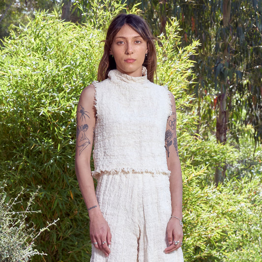 Live Edge Sleeveless Crop, Undyed Handspun Natural Cotton