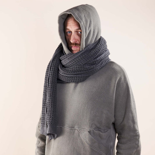 Big Selvedge Scarf, Chestnut Black Organic Cotton Waffle