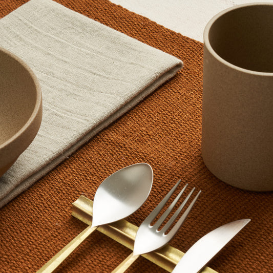 Handwoven Organic Cotton Placemat Set, Undyed Burnt Terracotta