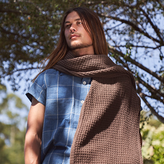 Big Selvedge Scarf, Cutch Brown Organic Cotton Waffle