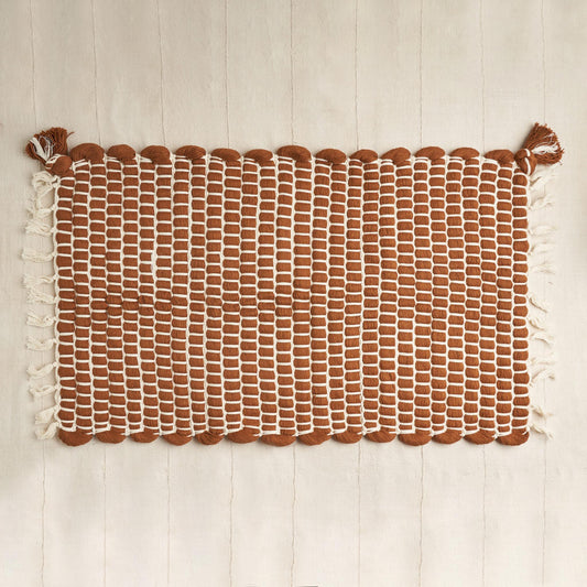 Handwoven Organic Cotton Placemat Set, Undyed Burnt Terracotta