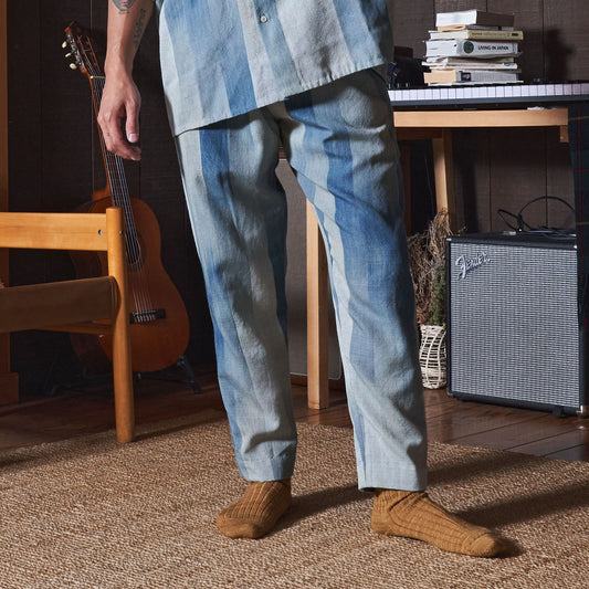 Drawstring Taper Trousers, Indigo Merino Wool Ikat