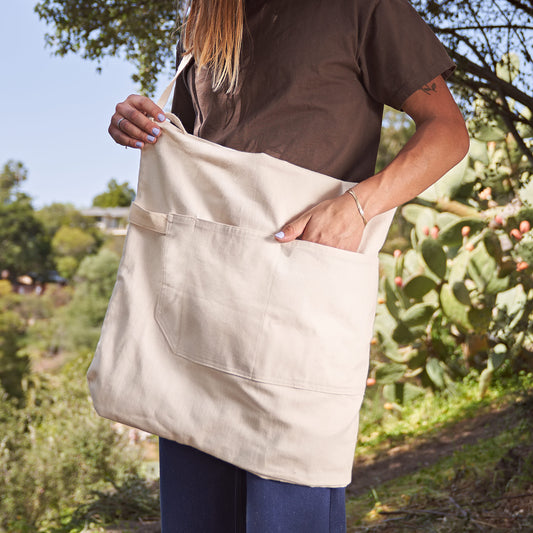 10-Pocket Convertible Maker Apron-Market Tote, Undyed Organic Cotton Twill + Canvas