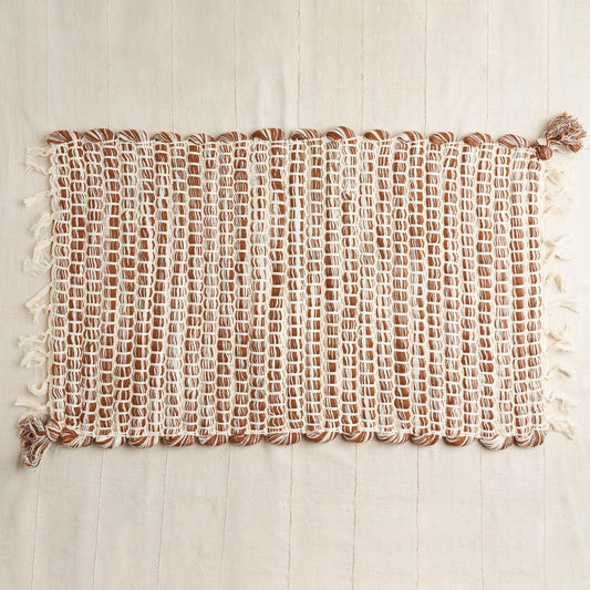 Handwoven Organic Cotton Rug, Undyed Burnt Terracotta Marble