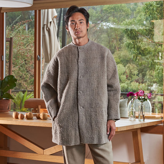 Silk-Lined Cocoon Coat, Handspun & Handwoven Iron Gray Wool
